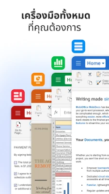 เริ่มต้นวันทำงานของคุณอย่างราบรื่นไม่ว่าจะอยู่ที่ใด ด้วย MobiOffice สุดยอดแอปพลิเคชันจัดการเอกสาร สเปรดชีต และงานนำเสนอ ที่ออกแบบมาเพื่อยกระดับประสิทธิภาพการทำงานของคุณอย่างแท้จริง สัมผัสประสบการณ์การทำงานที่คุ้นเคยราวกับใช้บนเดสก์ท็อป มาพร้อมเครื่องมือที่ทรงพลังและคุณสมบัติล้ำสมัยมากมาย อาทิ แปรงจัดรูปแบบ, เครื่องมือติดตามการเปลี่ยนแปลง, การจัดรูปแบบตามเงื่อนไข, สูตรคำนวณซับซ้อน และโหมดนำเสนอเอกสารที่มืออาชีพเลือกใช้ นอกจากนี้ยังสามารถส่งออกเอกสาร Word, Excel หรือ PowerPoint ให้เป็นไฟล์ PDF ได้อย่างง่ายดาย พร้อมระบบรักษาความปลอดภัยข้อมูลขั้นสูงที่เชื่อถือได้ ปกป้องทุกงานสำคัญของคุณให้ปลอดภัยอยู่เสมอ